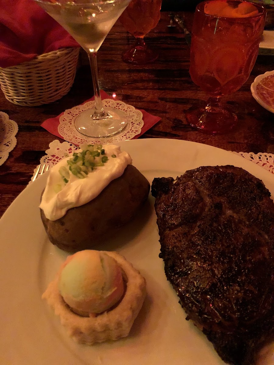 Best lemon drop cocktail around! Service is spectacular. We felt like we are part of a family. We ordered three ribeye steaks. Each came with a full bowl of the most delicious onion soup and a big plate of fresh salad. The steak was done exactly to our liking. The baked potatoes perfectly baked and stuffed with toppings. The side veggies were tender and still crunchy, not overcooked. Great experience!