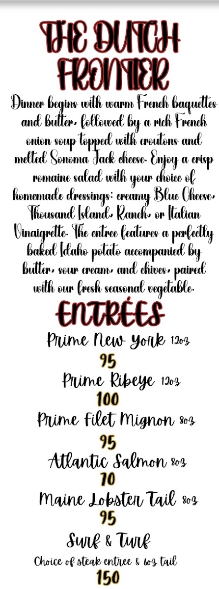 Dutch Frontier Restaurant Menu